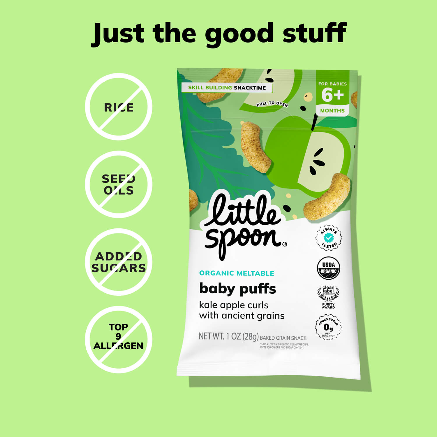 - Yes, Little Spoon’s rice-free baby stage puffs are made with all organic ingredients. This commitment to organic sourcing ensures that the puffs are not only delicious but also made with high-quality, natural ingredients, free from unnecessary additives and chemicals. By choosing organic ingredients like ancient grains, avocado oil, and fruits and veggies, we're giving your little one a nutritious and safe snacking option, supporting their growth and development with the best that nature has to offer.