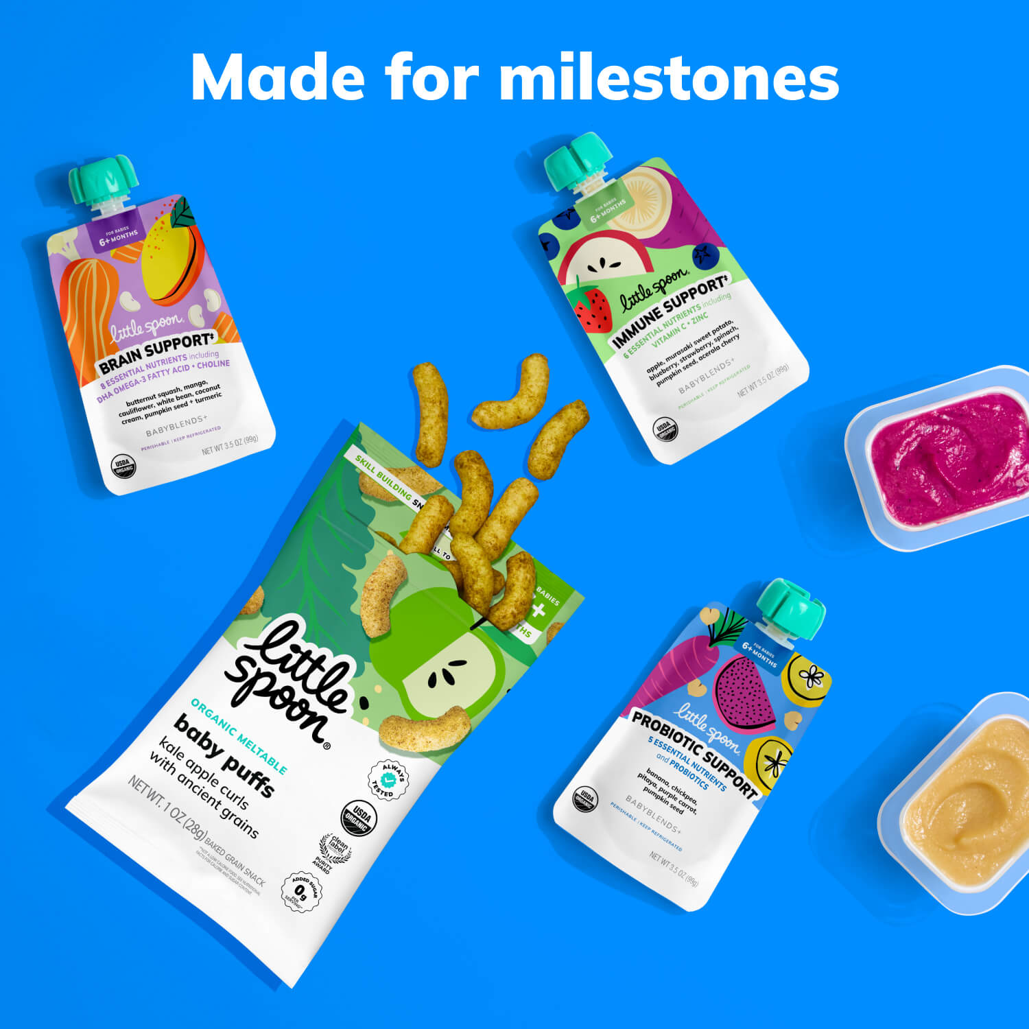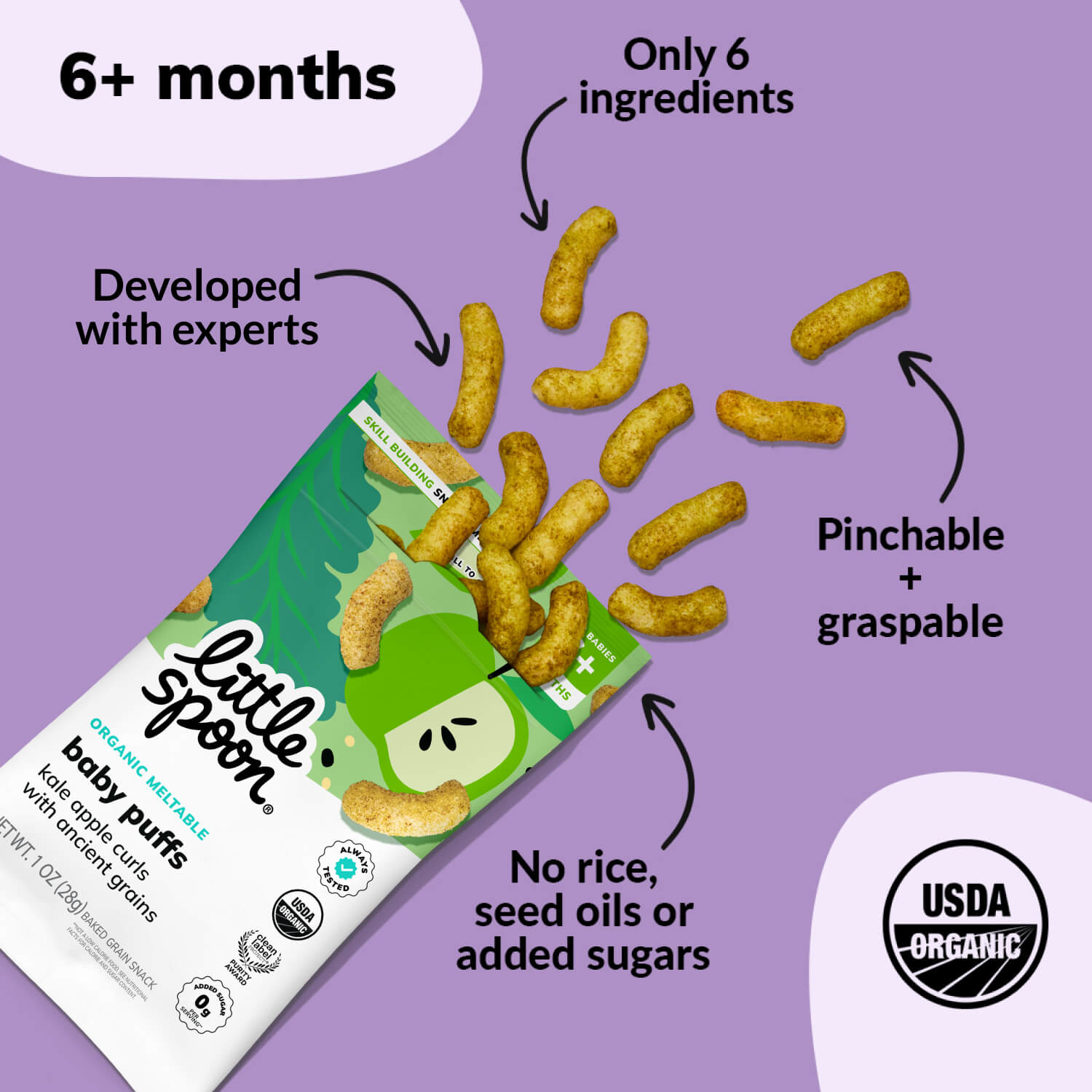 - Each Little Spoon Baby Puff is not just a snack but a developmental tool. Our puffs are thoughtfully designed in collaboration with a speech pathologist, featuring shapes which encourage a variety of oral and motor skills. This makes them an ideal choice for supporting your baby's feeding milestones.