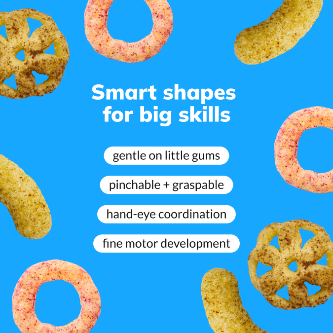 - Our puffs go beyond taste—they've been thoughtfully developed in collaboration with a speech pathologist with your mini's health in mind. Our baby snack puffs are perfect for stage 1 snacking and are intentionally shaped to support a wide range of oral and motor development skills. Our puffs are rice-free and don't contain seed oils. Their crunchy yet perfectly meltable texture is designed to encourage essential fine motor skills, promote self-feeding and foster independence, allowing your little one to snack with purpose and progress.